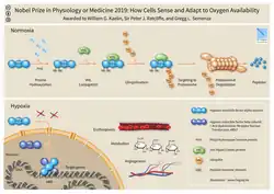 Hypoxie-induzierbare Faktoren wurden erstmals 1995 von Gregg L. Semenza und seinem Kollegen Guang Wang beschrieben.[21][7][22] Im Jahr 2016 erhielten William Kaelin Jr., Peter J. Ratcliffe und Gregg L. Semenza den Lasker Award für ihre Arbeit bei der Entschlüsselung der Rolle des HIF-1 bei der Messung von Sauerstoff und seiner Rolle beim Überleben unter Sauerstoffmangel.[23] Im Jahr 2019 erhielten sie den Nobelpreis für Physiologie oder Medizin.