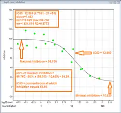 Nach der FDA ist die IC50 die Konzentration einer Substanz, die für eine 50%ige Inhibierung in vitro[1] notwendig ist. Die EC50 gibt auch die Plasmakonzentration an, die notwendig ist für einen 50%igen Effekt in vivo.[1]
