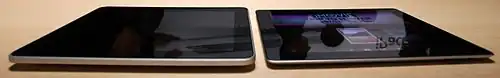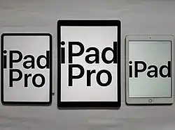 iPad ist der Markenname einer Tabletcomputer-Reihe des US-amerikanischen Unternehmens Apple, die sich durch einen berührungsempfindlichen kapazitiven Bildschirm mit Multi-Touch-Gesten bedienen lässt. Die iPad-Produktlinie besteht aus dem ursprünglichen iPad, das mittlerweile das Einsteigermodell darstellt, dem kleineren iPad mini, dem leichteren und dünneren iPad Air und dem Flaggschiff-Modell iPad Pro. 2019 wurde das bis dahin für iPads verwendete Betriebssystem iOS, das auch für iPhones und iPod touchs verwendet wird, durch das an Tablets angepasste iPadOS ersetzt.[4] Der Name setzt sich aus dem für Apple-Produkte typischen kleinen „i“ und pad – englisch für ‚Notizblock‘ – zusammen.