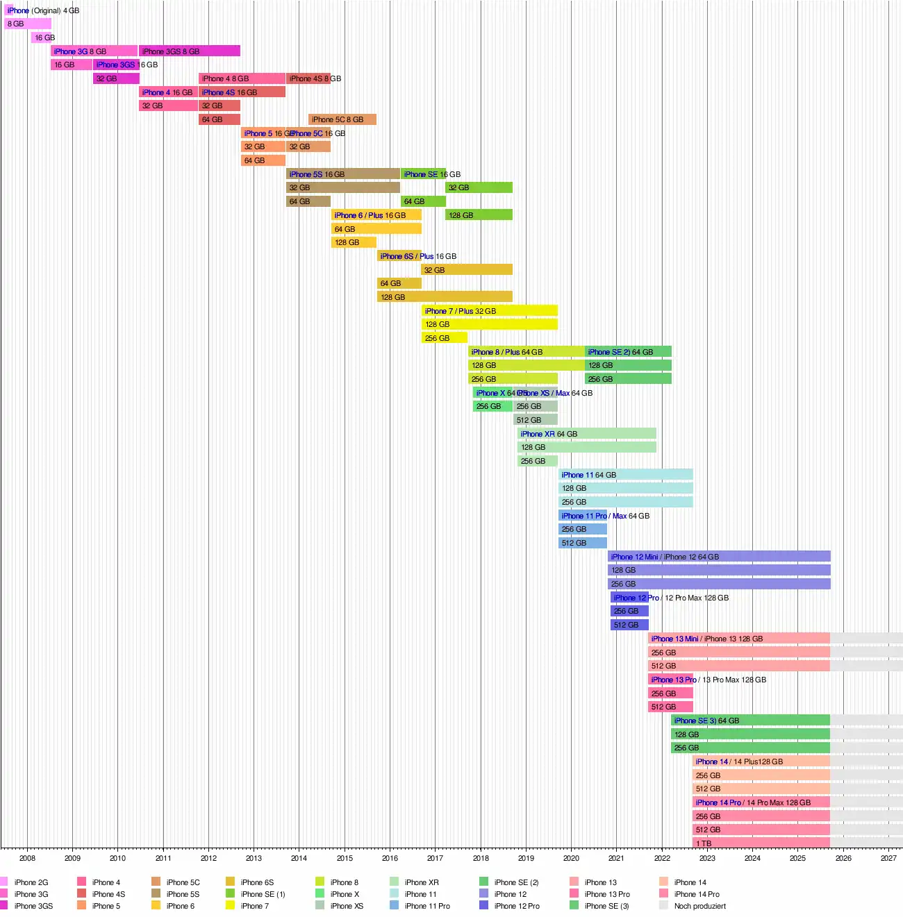 Übersicht aller verkauften iPhone-Modelle für den deutschsprachigen Raum mit Verkaufsstart und -preis