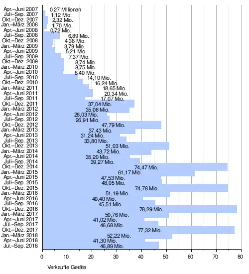 215. Q2 2018 Unaudited Summary Data. (PDF) In: apple.com. 1. Mai 2018, abgerufen am 9. Januar 2019 (englisch).