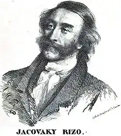 - Cours de littérature grecque moderne donné à Genève par Jacovaky Rizo Néroulos, ancien Premier Ministre des Hospodars grecs de Valachie et de Moldavie, publié par Jean Humbert. Abraham Cherbuliez, Genève, Paschoud, Paris 1827. – (enthält das Porträt)