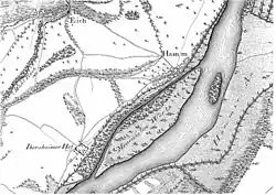 Das nördliche Ende der Insel ist auf historischen Rheinlaufkarten von 1799 und 1842 an der heutigen Gemarkungsgrenze, zwischen Ibersheim und Hamm, bei der Straße zum Rhein (ehemals Gasthaus Schmittel) erkennbar. Die Südspitze war bei der Gemarkungsgrenze zwischen Ibersheim und Rheindürkheim. Dort ist ein Prallhang des Rheines. Bei dem Neubau eines Rheindammes ab 1801, unter napoleonischer Regierung im Departement Donnersberg, ist dort der Einlauf zum Altrhein geschlossen worden. Die wasserbaulich schwierige Maßnahme wurde damals der Familie Brubacher übertragen, die in ihrer Schweizer Heimat, dem Berner Oberland, entsprechende Erfahrungen gesammelt hatten.[4] Mit der Schließung dieses Einlaufs wurde der Altrheinarm (Rheinlöcher/Scheidegraben) zu einem Stillgewässer. Ein Zu- bzw. Abfluss als Niveauregulierung gibt es heute im Norden auf der Gemarkung von Hamm, nahe der ehemaligen Pappelgruppe Zwölf Apostel.