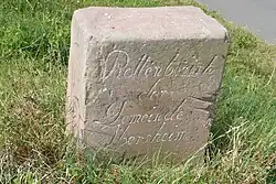 - Die Hochwassermarke mit dem historisch höchsten Stand war, mit der Jahreszahl 1882, in eine Sandstein-Säule gehauen worden und stand auf der Wasserseite des Hauptdammes hinter der Dammauffahrt von Ibersheim. Damals stand das Wasser am Pegel Worms bei 822 cm am 29. Dezember 1882.[24] Wegen der Dammverbreiterung 2003 bei Rheindürkheim, Ibersheim und Hamm ist diese Marke dort weggenommen worden.