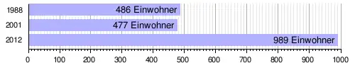 Im Hauptort lebten bei der Volkszählung 2012 989 Einwohner in 143 Haushalten,[1] bei der Volkszählung 2001 477 in 74 Haushalten[3] und bei der Volkszählung 1988 486 in 94 Haushalten.[4]