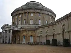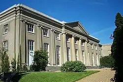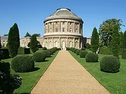 Die Rotunde wird von zwei segmentierten, eingeschossigen, schmalen Flügeln flankiert, die als Blendarkaden erscheinen und sie im palladianischen Stil mit zwei s an den Enden verbinden. Diese segmentierten Flügel werden mittig von vorspringenden Gebäudeteilen unterbrochen, in denen das Rauchzimmer und der Pompeianische Raum untergebracht sind, beide Anbauten aus dem 19. Jahrhundert.