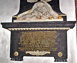Als Mit-Ortsherr in Wattenheim legte Ignatius Ferdinand von Vogelius 1772 den Grundstein zum Erweiterungsbau der damaligen Simultankirche des Ortes (heute protestantische Kirche).[11] 1784 starb der Freiherr in Worms und wurde in der nicht mehr existenten, alten Dominikanerkirche beigesetzt.[12] Bei ihrem Abriss, Anfang des 19. Jahrhunderts, kam sein prachtvoller Wappenepitaph von dort in die Liebfrauenkirche, wo er sich bis heute befindet. Er wurde laut Inschrift von der Ehefrau und den beiden Kindern gestiftet. Das Sterbedatum auf dem Grabstein weicht vom Kirchenbucheintrag ab und ist offenbar nicht korrekt.