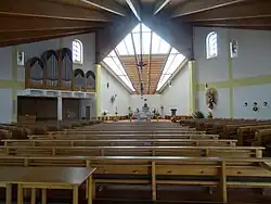 II/P | 17 | Saalorgel mit Koppelmanual. 2022 Generalsanierung, Reorganisation und Neuintonation durch Orgelbau Mühleisen in Kooperation mit Orgelbau Bäumler/Weiden. → Orgel | |