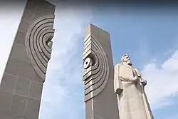 - 1964 wurde im Vereinigten Institut für Kernforschung in Dubna (bei Moskau) ein neues chemisches Element mit der Ordnungszahl 104 entdeckt (sog. Transurane). Dort wurde Plutonium mit Neonkernen beschossen.[3][4] Nach Vorschlägen sowjetischer Wissenschaftler wurde zunächst der Name Kurtschatowium (Ku) gewählt und in verschiedenen Staaten verwendet. US-amerikanische Forscher lehnten den Namen aus politischen Gründen jedoch ab und beanspruchten ihrerseits den durch sie 1969 erzielten ersten Nachweis des Elements für sich. Nach einer langjährigen Elementnamensgebungskontroverse setzte sich erst 1997 die Bezeichnung Rutherfordium (Rf) durch.