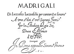 Das Madrigal war eine volkssprachliche, variable, lyrische Form italienischer Dichter und Musiker. In Zusammenarbeit mit dem herzoglichen Notendrucker Vittorio Baldini (ab 1580) entwickelte sich am Estensischen Hof die Tradition der „Ferrareser Madrigalschule“; sie zog, insbesondere durch die Gesangskünste des Concerto delle Donne, prominente Gäste wie den Münchener Hofkapellmeister Orlando di Lasso oder den Sänger und Komponisten Giulio Caccini und weitere Mitglieder der Camerata Fiorentina an.[9] Diese Akademie war – wie bekannt – maßgeblich an der Entwicklung der Oper beteiligt.