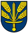 Das Ortswappen wurde im Jahre 2000 eingeführt. Es zeigt ein vertikal nach oben weisendes gelbes Schwert sowie vier Ähren auf blauem Grund. Das Wappen symbolisiert den Friedenswunsch nach der Dorfzerstörung; die Farben wurden vom Herzogtum Braunschweig übernommen, zu dem das Dorf zeitweilig gehört hatte.[7]