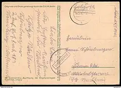 - ↑ Revers einer 1942 versandten Kriegspropaganda-Bildpostkarte der Großdruckerei Illert & Ewald KG