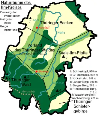 Der Ilm-Kreis lässt sich topografisch in drei verschiedene Zonen gliedern: