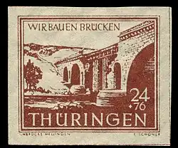 Zum Ende des Zweiten Weltkrieges wurde die Brücke gesprengt. Sie wurde 1945 provisorisch wieder aufgebaut. Sie war in diesem Zustand Motiv auf einer Briefmarke der SBZ.[3] Die historische Autobahnbrücke ist ausgewiesenes Kulturdenkmal und steht auf der Liste der Kulturdenkmale in Mellingen (Thüringen).