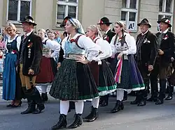Niederösterreich | Seit 1957 finden am 15. August wechselnd in 54 Wallfahrtsorten des Mostviertels die Goldhaubenwallfahrt statt. An der jährlich stattfindenden Wallfahrt der 25 Goldhauben-, Kopftuch-, Perlhauben- und Hammerherrengruppen beteiligen sich etwa 1000 Wallfahrer aus dem ganzen Mostviertel. Am Hohen Frauentag ziehen die Teilnehmer, in Trachten gekleidet, begleitet von Musikkapellen und Chören, gemeinsam zum Festgottesdienst in die Kirche ein. Während des Festgottesdienstes wird gedankt und für eine friedvolle Zukunft und für das persönliche und familiäre Wohlergehen gebeten. Am Ende des Festgottesdienstes werden Kräuterbüschel und die Wallfahrerkerzen gesegnet.[25] Termin: jährlich am 15. August nächster Termin: 15. August 2026 | ||