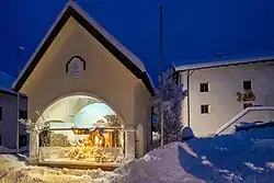 In Wenns werden seit mehr als 150 Jahren Krippen gebaut, in Privathäusern und Kirchen aufgestellt und den Besuchern beim „Krippeleschauen von Haus zu Haus“ präsentiert. Im Ort wurden traditionell verschiedene Krippentypen, von der Wenner Kastenschneekrippe, über die Wenner Kastenspiegelkrippe bis hin zum Wenner Mooskrippenberg gebaut. Der Weihnachtskrippen-Gesellschafts-Verein organisiert das Aufstellen der etwa 300 Krippen im öffentlichen und privaten Raum, die Organisation des Krippenschauens von Haus zu Haus und die Weitergabe des Wissens um die Krippen und deren Bau in Kursen und Workshops. Das traditionelle Krippenschauen hat in Wenns eine wichtige soziale Funktion: gemeinsam besucht man die Nachbarn und besichtigt die Krippe. Zum Abschluss wird verbunden mit bestem Dank und guten Wünschen für das Neue Jahr das „Gloriawasser“ (selbstgebrannter Obstler) getrunken. Seit 2010 werden im Ort in einem Museum in einer permanenten Krippenausstellung etwa 40 ausgewählte Krippen präsentiert.[25] Termin: Adventszeit | |