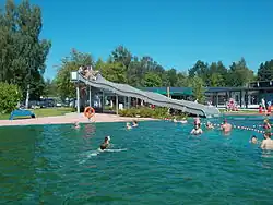 Das Naturerlebnisbad wurde als konventionelles Freibad 1972 eröffnet und nach umfassender Sanierung von 2009 bis 2011 mit ökologischer Klärung des Wassers wiedereröffnet. Das Bad besitzt neben einem Sprungturm auch eine Wellenrutsche[13]