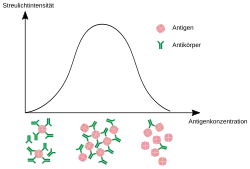Ausgefallene oder lösliche Antigen-Antikörper Immunkomplexe trüben eine Lösung. Verwendet man gereinigte Antigenstandards so kann durch Messung der Trübung per Immunnephelometrie auf die Antigenkonzentration in der Probe geschlossen werden.[6]