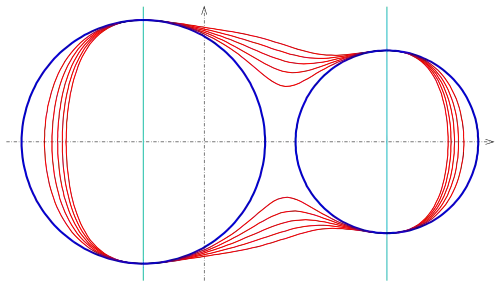krümmungsstetige Übergangskurven zwischen den beiden implizit gegebenen Kreisen
