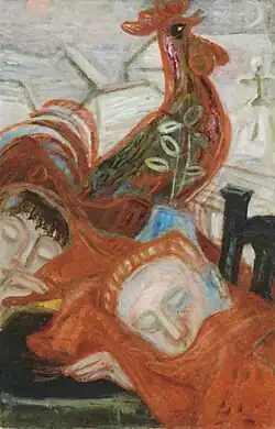 Bald begann Ámos experimenteller und expressionistisch zu arbeiten, er selbst schrieb in seinem Tagebuch von „assoziativem Expressionismus“.[1] Die Bildinhalte entnahm er den Geschichten seines Großvaters und der Welt der Juden in Ungarn.[2] Im Jahr 1937 lebte der junge Künstler zwei Monate in Paris. Hier lernte er Marc Chagall kennen, dem Ámos' Werk gefiel und der ihn zu einem längeren Aufenthalt überredete. Hier sah er auch Picassos Guernica, das ihn nachhaltig beeindruckte. Die Sommer verbrachte Ámos in diesen Jahren bis 1941 mit seiner Frau, der Malerin Margit Anna, die er 1935 geheiratet hatte, und den Freunden Lajos Vajda und Endre Bálint im kleinen Städtchen Szentendre.[2][1]