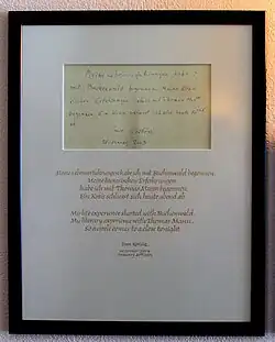 - ↑ Imre Kertész: Letzte Einkehr. Ein Tagebuchroman. S. 5 (Widmung), analog S. 290; nach einer Notiz vom 8. November 2006, Letzte Einkehr. Tagebücher 2001–2009. S. 391.