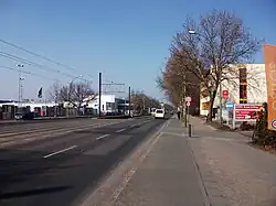 Auf beiden Seiten der Straße sind bauliche Radwege angelegt.