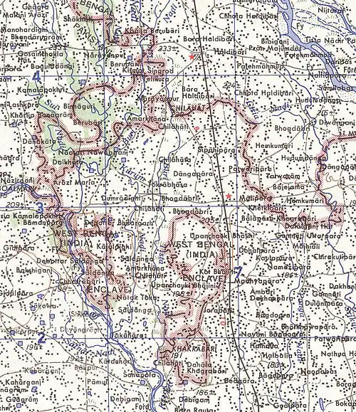 Außerdem gab es in diesem Komplex eine Enklave in einer Enklave in einer Enklave (Unterunterenklave). Diese indische Exklave war die einzige Exklave dritter Ordnung der Welt. Sie bestand aus einem Jutefeld mit dem Namen „Dahala Khagrabari“ (Erste von 51) und lag in der bangladeschischen Unterenklave Upanchowki Bhajni, die wiederum in der indischen Enklave Balapara Khagrabari lag, welche sich auf der Grenze der bangladeschischen Unterdistrikte (Upazilas) Debiganj und Domar befand (Abb.).