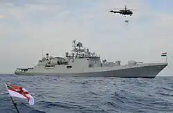 INS Trikand beim Einlaufen in den Hafen von Haifa, Israel (2015)
