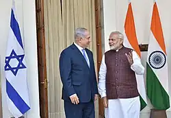 Im Januar 2018 fand anlässlich des 25-jährigen Bestehens der indisch-israelischen Beziehungen ein Besuch des israelischen Premierministers Benjamin Netanjahu in Indien statt. Dieser Besuch war der erste seit dem Besuch eines israelischen Premierministers seit dem von Ariel Scharon in Indien im Jahr 2003.[16]