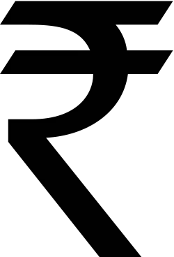 Neben dem japanischen Yen, dem britischen Pfund, dem Euro, dem US-Dollar und anderen Währungen hat auch die Indische Rupie seit 2010 ein eigenes Währungssymbol. Dieses sieht aus wie der Lateinische Großbuchstabe „R“, dem der vertikale Balken fehlt und der dafür über seine gesamte Breite zwei horizontale Linien im oberen Drittel des Symbols trägt. Es ist eine Zusammensetzung aus dem R mit Querstrich und dem Buchstaben र (Ra) aus der Devanagari-Schrift.[30][31] Dem vorausgegangen war ein vom indischen Finanzministerium ausgeschriebener öffentlicher Wettbewerb. Das Ziel des Wettbewerbes war die Erstellung eines Identifikationssymbols für die Indische Rupie mit einem hohen Wiedererkennungswert. Das neue Symbol sollte unter anderem traditionelle, historische und kulturelle Werte Indiens beinhalten. Nur indischen Bürgern war es gestattet, gegen eine Gebühr von 500 Rupien an dem Wettbewerb teilzunehmen. Das letztlich aus 3000 eingereichten Entwürfen ausgewählte Symbol wurde von einer siebenköpfigen Jury, bestehend aus Mitarbeitern der Regierung Indiens und der Zentralbank, ausgewählt. Der Gewinner des Wettbewerbes erhielt ein Preisgeld in Höhe von 250.000 Rupien[32] (ca. 2.400 Euro).