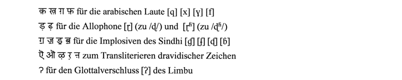 | NLAC | IPA | Devanagari | Bengalisch | Gurmukhi | Gujarati | Oriya | Tamil | Telugu | Kannada | Malayalam | Sinhala | Tibetisch | |||||||||||