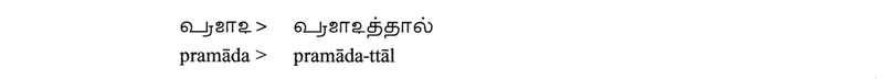 Im Malayalam wird für dravidische Wörter analog dem Tamil die dem dravidischen Phonemsystem entsprechende Schreibung verwendet, während für Sanskrit-Wörter die Sanskrit-Orthographie gilt.