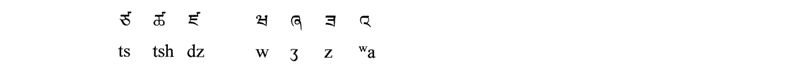 | ch | छ | ছ | ਛ | છ | ଛ | – | ఛ | ಛ | ഛ | ඡ | ཆ | |
