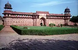 Auch der etwa zur gleichen Zeit wie Fatehpur Sikri entstandene Jahangiri Mahal in Agra (Uttar Pradesh, Nordindien) ist im Inneren überaus indisch. Rechteckige und quadratische Säulen mit weit ausladenden Konsolen stützen das erste Obergeschoss. Dessen Flachdecke ruht auf schräg gelagerten Steinbalken, welche die statische Funktion eines Gewölbes übernehmen. Entlang der Fassade zum Hof, der exakt im Zentrum des im Gegensatz zum Panch Mahal von Fatehpur Sikri völlig symmetrischen Bauwerks liegt, zieht sich ein konsolengestütztes Schattendach auf der Höhe des ersten Stockwerks. Erst an der Außenfassade treten persische Formen zutage. Den Eingang bildet ein kielbogiger Iwan. Angedeutete Bögen schmücken die flächigen Außenwände. Indische Einflüsse offenbaren sich aber auch hier in den konsolengestützten Traufkanten, den Zierbalkonen am Portalbau sowie den Chattris auf den beiden Türmen, die die Extrempunkte des Palastes hervorheben.