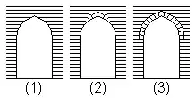 Das wichtigste Merkmal der indo-islamischen Architektur, der Bogen, wurde zunächst in althergebrachter Hindu-Bauweise als falscher Bogen aus aufeinander geschichteten, auskragenden Steinen errichtet, der jedoch keinen größeren Zugbeanspruchungen standhalten kann. Um die statischen Eigenschaften zu verbessern, gingen hinduistische Handwerker beim Bau der Quwwat-ul-Islam-Moschee in Delhi im frühen 13. Jahrhundert dazu über, die Fugen zwischen den Steinen im oberen Bereich des Bogens senkrecht zur Bogenlinie zu verziehen. Auf diesem Wege gelangten sie schließlich zum echten Bogen mit radial verlegten Steinen. Die beliebtesten Bogenformen waren der Spitzbogen und der Kielbogen (Eselsrücken). Als Zierform der beiden vorgenannten setzte sich später auch der Zackenbogen (Vielpassbogen) durch.