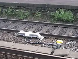 Am Gleis liegen die Gleismagnete, deren Spule zusammen mit einem Kondensator einen auf eine bestimmte Frequenz abgestimmten Schwingkreis bildet. Sie werden mit Gleismagnethaltern an der in Fahrtrichtung rechten Schiene auf der Außenseite befestigt und ausgerichtet.