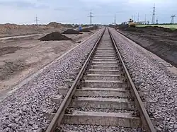 Gleisende vorm Zaun des Dämmstoffwerks URSA