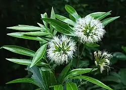 Die zwittrigen Blüten sind radiärsymmetrisch mit doppelter Blütenhülle. Die Kelchblätter sind an ihre Basis verwachsen. Die Kronblätter sind verwachsen. Es sind zahlreiche lange Staubblätter vorhanden (sie sind der auffälligste Bestandteil der Blüten). Es ist nur ein oberständiges Fruchtblatt vorhanden.[3]