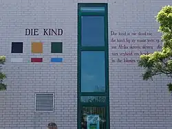 Das Gedicht Die Kind an einer Wand in Leiden, Niederlande