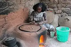 Bauern des äthiopischen Hochlands, die Weizen, Gerste, Mais oder Reis zum Eigengebrauch anbauen, verwenden auch diese Getreide zur Herstellung von Injera.[1]