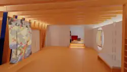 - Wenn die Lichtquelle nicht bodennah, sondern im oberen Bereich der Wand installiert wird, kann durch das Ausleuchten der Decke ein Eindruck von Offenheit erzeugt werden; oft genügt das Licht, um den Raum so hell zu machen, das nur noch wenig zusätzliche Lichtquellen (als Akzent- oder Aufgabenlicht) benötigt werden.[70]