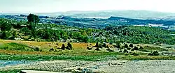 Südlich der Sivrihisar Dağları geht das Porsuk-Sakarya-Gebiet in die Obere Sakarya-Senke über, dort liegen die Emir Dağları und im Osten die Schwelle von Cihanbeyli. Hier handelt es sich um den klassischen Fall einer für Inneranatolien typischen Steppentafel mit Verbindungen im Norden zum Porsuk-Tal und im Süden zum Becken von Konya. Die Obere Sakarya-Senke wird von ungestörten, flachlagernden lakustrischen Sedimenten des Miozäns gebildet, die vermutlich auf kristallinem Untergrund liegen. Die Sedimente dieses Beckens wurden in der alten Literatur noch dem unteren Pliozän zugeordnet. Nach neueren Erkenntnissen sind sie ins obere Miozän zu stellen.[44] Diese neogene Tafel mit Höhen um 950 m wurde vom Sakarya und seinen Nebenflüssen zerschnitten. Die Oberfläche des Plateaus stimmt im zentralen Teil mit einem altpliozänen Seeboden überein. Am Fuß der umrahmenden Gebirge schneidet sie als Skulpturfläche die Sedimente des Grundgebirges. Dadurch hat sich rings um die neogene Platte ein mittel- und jungpliozänes Fußflächensystem ausgebildet.[45] Das lokale Klima wird bestimmt von heißen, trockenen Sommern und kalten, relativ trockenen Wintern. Die jährliche Niederschlagsmenge liegt im Durchschnitt deutlich unter 400 mm. Die Vegetation besteht ausschließlich aus Steppenformationen, und auch die hydrologischen Gegebenheiten stehen in eindeutiger Abhängigkeit vom Niederschlag und vom Grundwasser. Im westlichen Teil des Gebietes gibt es Karstquellen, die als Ursprung des Sakarya gelten. Im Osten, in der Gegend von Akgöl, hängt der Wasserhaushalt allein von den Niederschlägen ab, weshalb nur periodische und episodische Abflüsse zu verzeichnen sind.