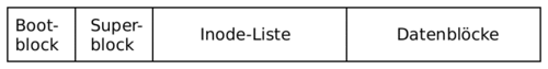- Der Dateisystemtreiber liest den Superblock aus. Dadurch erfährt er die Startposition der Inodes und deren Länge. Somit kann nun jeder beliebige Inode gefunden und gelesen werden.