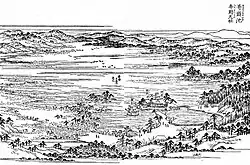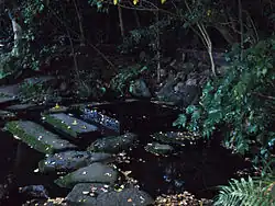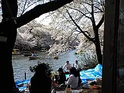 Der Teich wird von 400 Kirschbäumen gesäumt, die ihre Zweige bis über das Wasser ausbreiten. Die Blütenblätter wirbeln wie ein Schneetreiben über den Teich. Ein Gedenkstein erinnert an Noguchi Ujō (1882–1945), der für seine naturverbundenen Dichtungen bekannt ist.