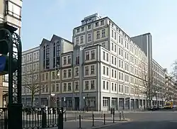 - Südlich der Inselbrücke sind in der Inselstraße, der Wallstraße und am Märkischen Ufer zahlreiche Bauten aus der Zeit um 1900 erhalten, die fast alle in der Berliner Landesdenkmalliste stehen. In Sichtweite der Fischerinsel befindet sich das 1923 fertiggestellte Gewerkschaftshaus von Franz Hoffmann und Max Taut, von Walter Würzbach 1930–1932 erweitert.[5] Dieses Gebäude ist häufiges Ziel von Architekturexperten aus aller Welt, weil es eines der ersten monolithischen Betonbauten ist.