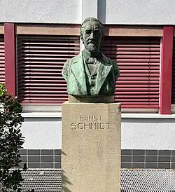 Auf dem Gelände befindet sich eine bronzene Büste von Ernst Albert Schmidt, einem der wichtigen Direktoren des Pharmazeutischen Instituts der Philipps-Universität Marburg. Die Büste wurde von der Künstlerin Lilli Wislicenus im Jahr 1920 geschaffen und befindet sich auf einem hochrechteckigen Sandsteinpodest vor dem Institutsgebäude.[2]