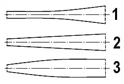 Heute gebräuchlich bei den höher gestimmten Instrumenten (ab B-Trompete aufwärts) sind folgende Größen (jeweils am Beginn des Schaftes gemessen):