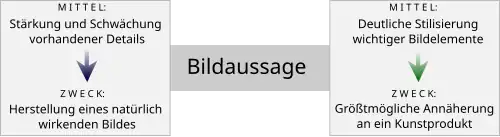 - Techniken der Bildbearbeitung, die die Kernaussage der Inszenierung nicht ändern. Ein typisches Beispiel ist die Beautyretusche.