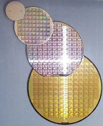 Damit die hohen Anforderungen der Mikroelektronik erfüllt werden können, muss das Substrat in Form von hochreinen Einkristallen hergestellt werden. Im Falle des Siliciums wird zunächst aus einer hochreinen Siliciumschmelze (vgl. Gewinnung von Reinsilicium) ein einkristalliner Zylinder (Ingot) gezogen. Dazu wird vornehmlich das sogenannte Czochralski-Verfahren (CZ-Verfahren) genutzt. Ein alternatives Verfahren ist das Zonenschmelzen, was auch zur weiteren Reinigung der CZ-Ingots eingesetzt werden kann; für einige Spezialanwendungen sind höhere Reinheitsgrade notwendig als ein Fremdatom auf 109 Atomen der CZ-Ingots. Die Ingots werden in 0,5 bis 1,5 mm dünne Scheiben, die sog. Wafer, zersägt. Die heute (2016) in der Massenproduktion verwendeten Siliciumwafer haben Durchmesser von 150, 200 oder 300 mm (auch 6, 8 oder 12 Zoll bezeichnet), während sich Wafer von 450 mm noch in der Einführungsphase befinden. Sie erhalten durch verschiedene Ätz-, Schleif- und Polierprozesse eine nahezu perfekte ebene Oberfläche mit Unebenheiten in der Größenordnung kleiner einem Nanometer, das heißt nur wenigen Atomlagen.