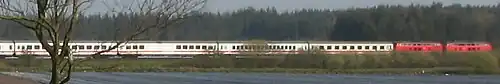 Zusammen mit den Doppelstockwagen werden seit Dezember 2015 Lokomotiven der Baureihe 146.5, seit 2018 auch die Nachfolgebaureihe Baureihe 147.5 eingesetzt. Diese sind im Gegensatz zu den bisherigen Loks im Intercity-Einsatz nicht verkehrsrot, sondern (wie die Wagen) lichtgrau mit einem roten Streifen lackiert.[37] Die Loks der Baureihe 147.5 sind für den Einsatz in der Schweiz ausgerüstet.